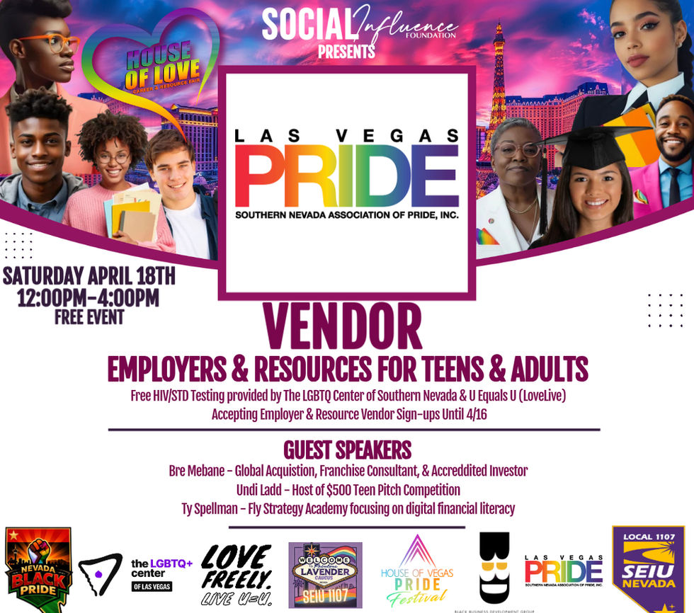 The Social Influence Foundation's believes everyone should have access to #knowyourstatus. We are proud to partner with U=U (Undected=Untransmittable) to provide free HIV/STD testing during our events in the City of Las Vegas. House of Vegas Pride Founder, Nicole Williams is also a Brand Ambassador, works with closely with U=U Las Vegas to provide information to the community about prevention, and share vital updates on HIV/STD statistics as we are all working to help bridge the gap to normalizing being tested regularly.